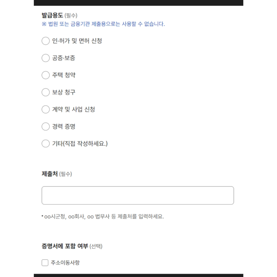 - 일반용만 가능: 특정 용도(부동산 거래 등)로 사용되는 인감증명서는 인터넷으로 발급받을 수 없습니다.