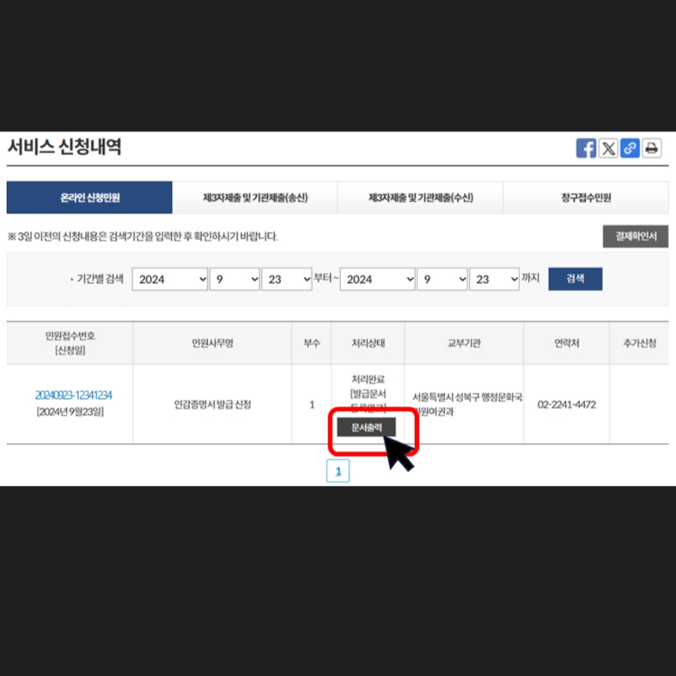 수령방법, 마이페이지, 문서출력