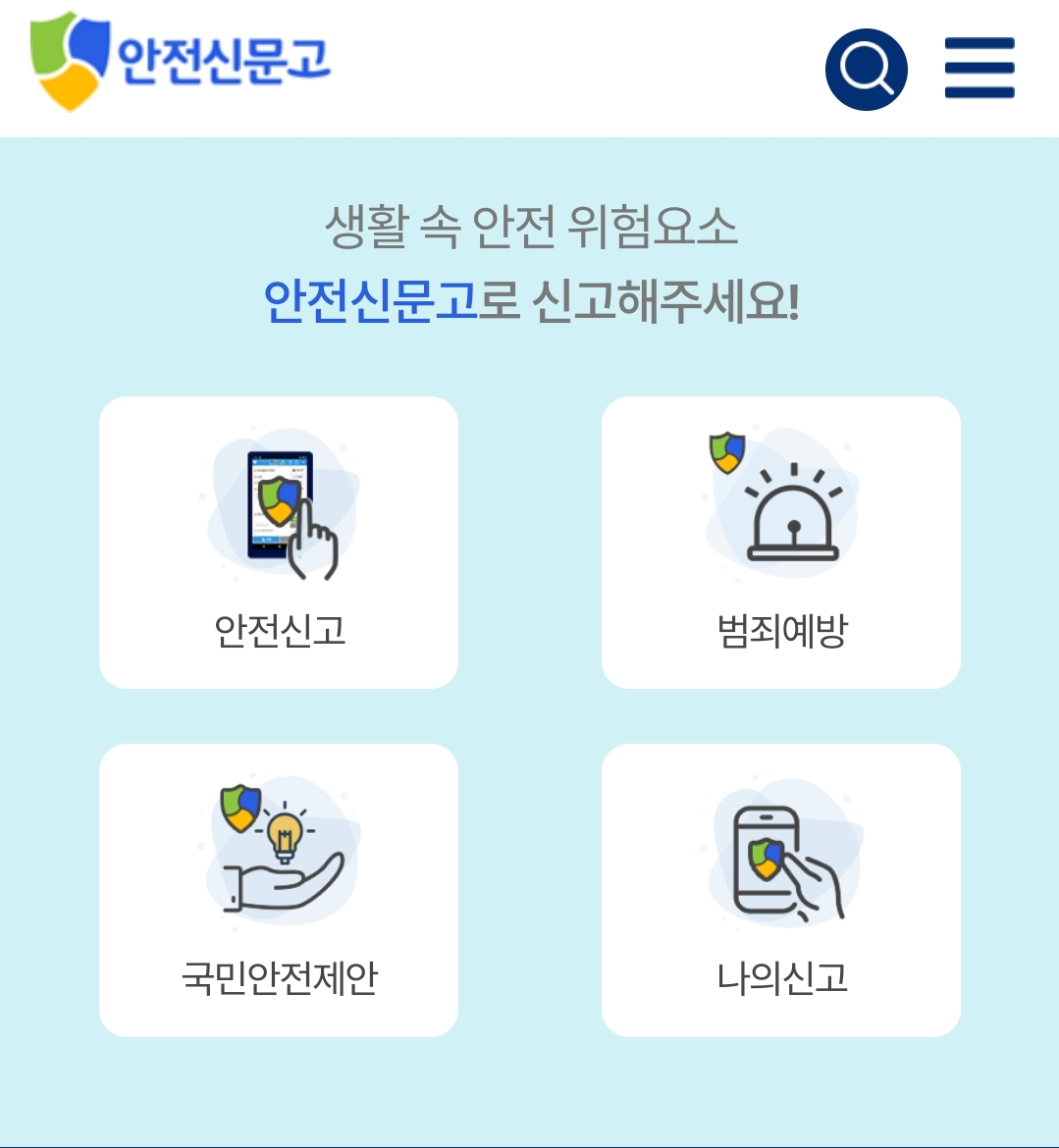 앱 설치: 스마트폰에서 '안전신문고' 앱을 다운로드하여 설치합니다.
