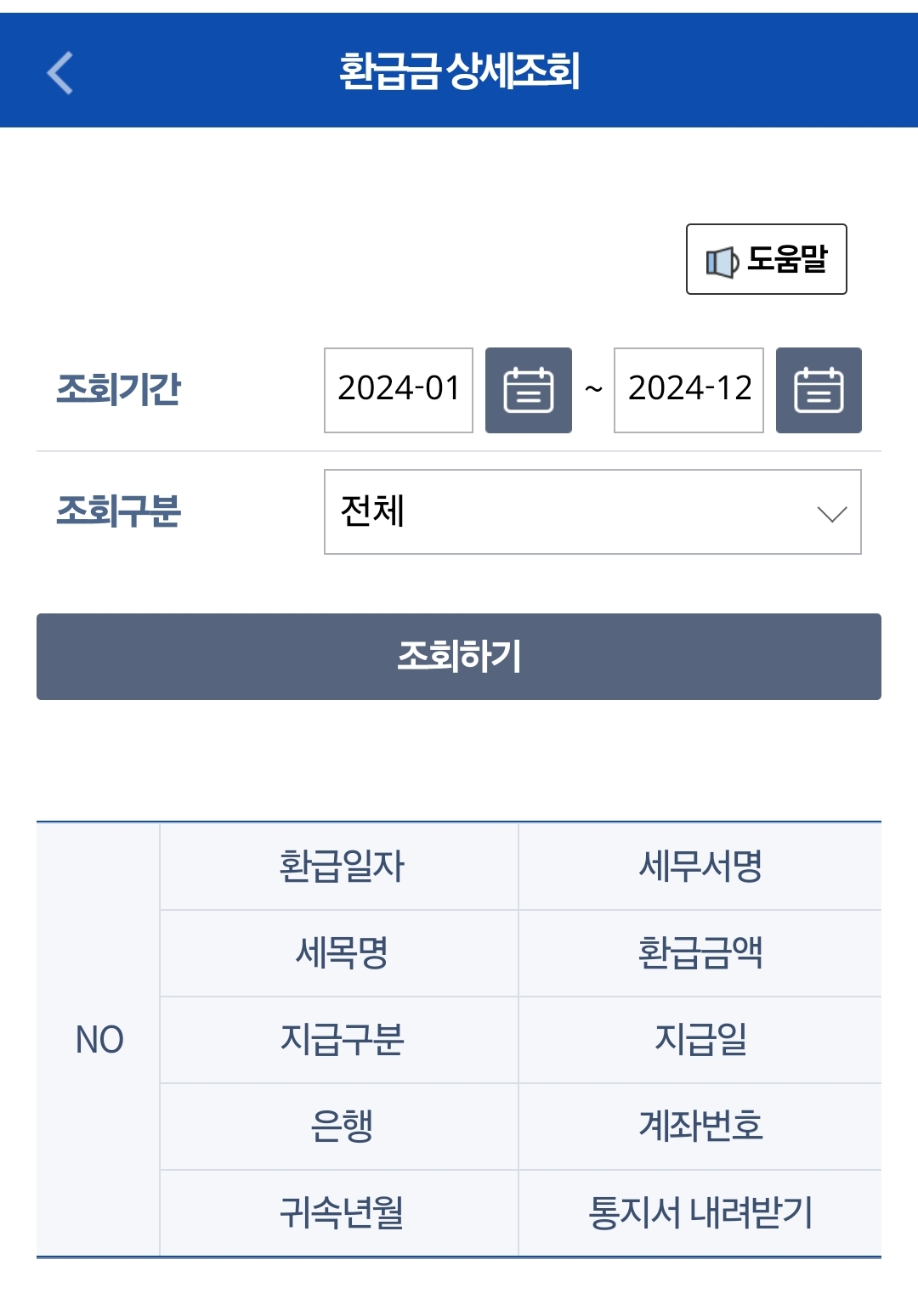 조회는 연말정산 신고 후 국세청에서 계산이 완료된 이후 가능합니다.